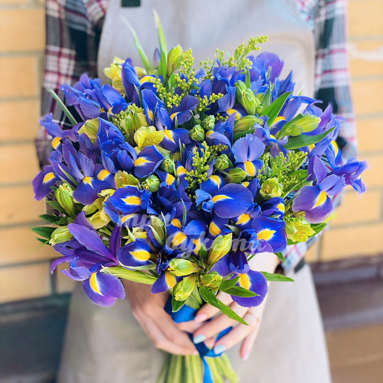 Букет из 15 альстромерий и 25 ирисов