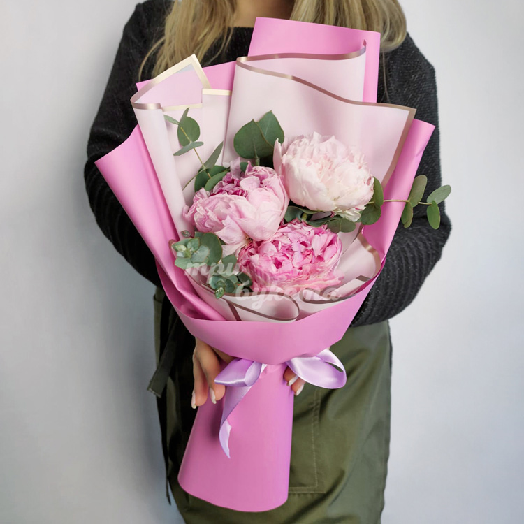 Букет из 3 розовых пионов