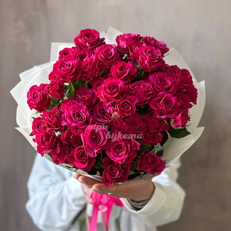 - Розовые кустовые розы, 9 шт.