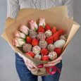 Букет из цветов и фруктов в крафте