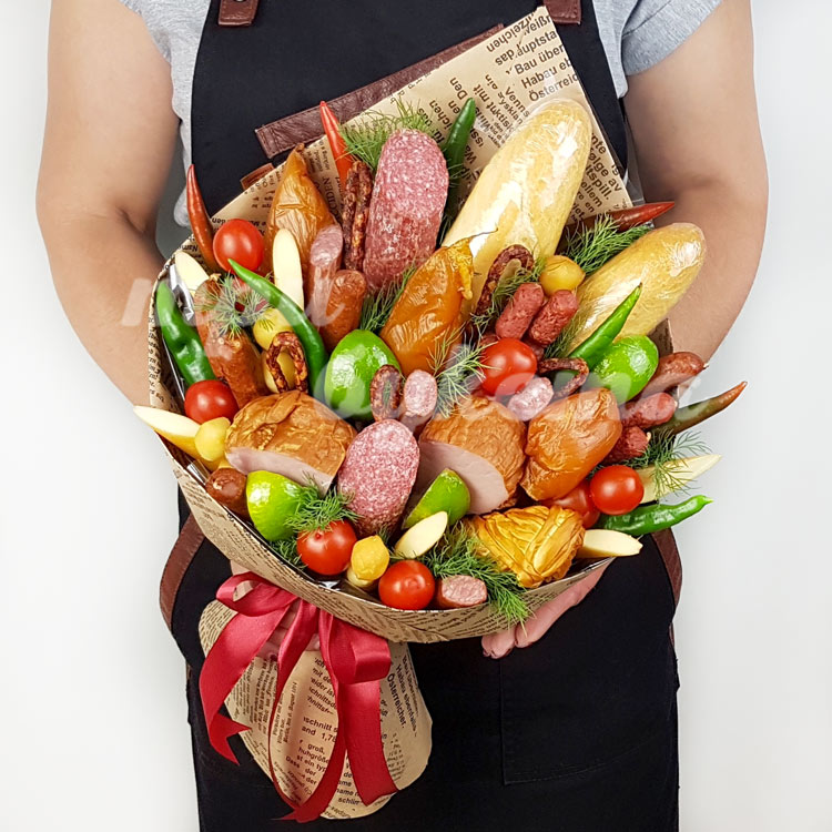 Букет из копченого мяса и сыра