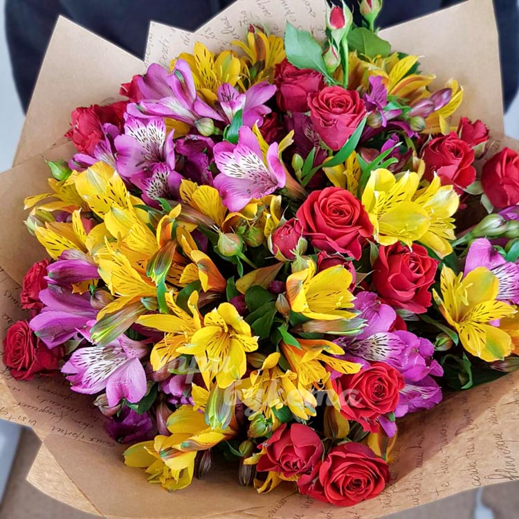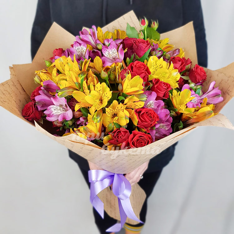 Букет ярких альстромерий и роз