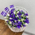Корзина белых ромашек, хризантем и роз