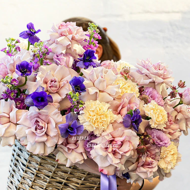 Корзина с розами Мента и анемонами