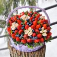 Корзина с розовыми эустомами и ягодами