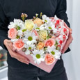 Орхидея Ванда с эустомами в коробке