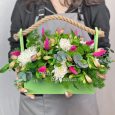 Пионовидные розы и гортензии в ящике