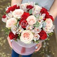 Ранункулюсы и розы в ящичке