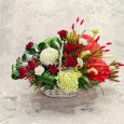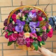 Яркая корзина гвоздик, роз и маттиол