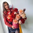 Яркие розы на 8 марта в шляпной коробке